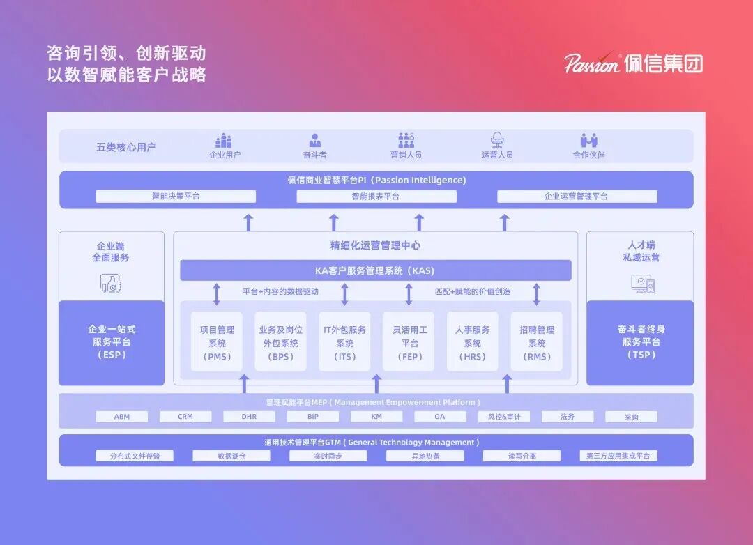 目前,佩信集团拥有四大数字化核心产品,人力资源服务平台持续释放数据价值,提升人力资源智能运营效率;DHRSSC管理软件牵引三支柱转型,强化人力资源服务核心动能;信息技术服务平台,赋能企业聚焦核心业务;业务流程服务平台以多端技术协同价值,助力企业业务流程科学高效。