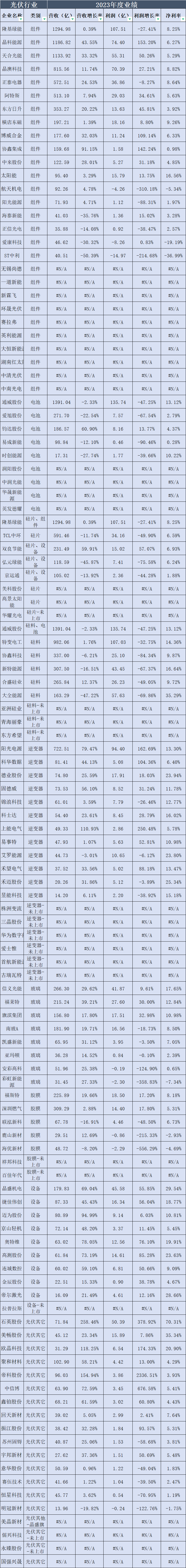 光伏设备板块业绩表现非常好,所有企业营收和净利润均实现正增长,营收和净利润平均增速均超30%。
