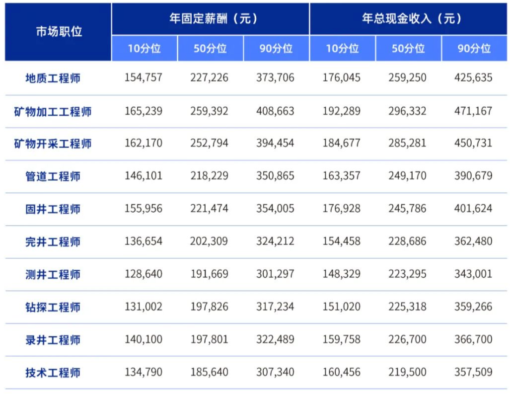 油气行业热门岗位薪酬数据