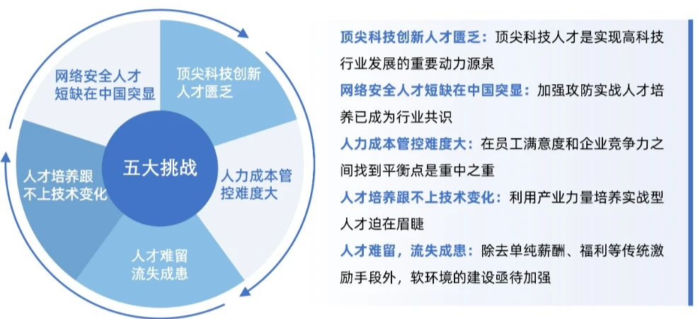 网络安全人才短缺在中国突显。主要因供需不平衡、高端专家稀缺及培训不足。教育部数据显示,每年仅培养 3 万人,到 2027 年预计缺口达 327 万。企业招聘更偏向实战能力(60%)而非专业知识(45%),尤其需求渗透测试、漏洞利用和逆向分析等技能。未来几年,安全运维和高水平专家将成为最抢手资源,加强攻防实战人才培养已成为行业共识。人才培养跟不上技术变化。技术迭代速度日新月异,岗位需求也随之快速变化。然而,目前我国的人才培养体系在面对这种快速变化时显得力不从心。当前的人才培养模式缺乏体系化的培养架构,单纯依赖高校培养人才的体系已难以满足快速变化的市场需求。这种局限性导致人才技能与岗位需求之间存在较大的差距,许多企业面临着招聘到的人才难以胜任岗位需求的困境。企业需要提供持续的培训与发展机会,在产教融合链条上多下功夫,利用产业力量培养实战型人才迫在眉睫。人才难留,流失成患。高科技行业工作压力通常较大,同时呈现员工高学历、队伍年轻化的特点,然而随着Z时代员工入场以及疫情爆发带来的冲击,传统的焦虑驱动和压力传导在新一代员工面前越来越收效甚微,员工流动性增大,企业需要重新审视并更新其人才激励策略,除去单纯薪酬、福利等传统激励手段外,软环境的建设亟待加强,这包括提供良好的职业发展机会、灵活的工作制度、健康的工作生活平衡、积极的团队氛围等。人力成本管控难度大。人力资源成本与员工满意度之间存在着密切的关联。一方面,人力资源成本的高低直接影响到员工的福利待遇和工作条件,从而影响到员工的满意度。另一方面,满意度高的员工更倾向于保持较高的工作动力和积极性,从而提高工作效率和绩效,减少人力资源成本。企业如何在保证员工满意度和企业竞争力之间找到平衡,有效控制人力资源成本,同时避免对员工产生负面影响,成为企业管理的关键课题。佩信集团旗下数字科技品牌⸺佩企科技,凭借在咨询与解决方案、云智能、信创及数字基础设施与系统集成、人工智能与数据使能等领域的长期深耕,致力于为高科技领域的客户提供全栈创新解决方案,帮助企业客户实现智能化和信息化的战略目标。欢迎点击下载报告》》》